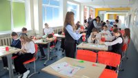 В 176-й школе в Кванториуме пятиклассникам провели мастер-класс по созданию механической игрушки. Уроки подготовили старшеклассники по проекту "Счастье для всех", чтобы развить у школьников инженерное мышление. Мастер-класс по каракури, или принципам бережливого производства, организовали специалисты Электрохимического завода.