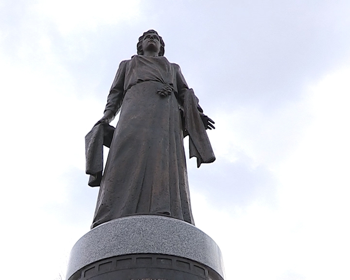 Татьяна КУШНЕРОВА – корреспондент: «Судьба Марины Ладыниной в кинематографе складывалась непросто. Она снималась только первую половину своей жизни и хотела, чтобы ее запомнили молодой. Именно молодой она и увековечена в бронзе. Памятник был открыт в Назарове в 2012 году, а сама идея возникла во время проведения первого Назаровского кинофорума в 2011 году. Идею высказал актер Сергей Никоненко, поддержал губернатор Лев Кузнецов и воплотил красноярский скульптор Константин Зинич».