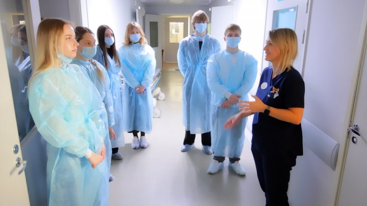 Место, где появляется жизнь, стало первым погружением в мир медицины для будущих врачей. Для одиннадцатиклассников экскурсию проводит акушер-гинеколог Валерия Третьякова. О медицине она мечтала с 8-ого класса, после школы поступила на целевое обучение, и вот уже почти 10 лет работает в Клинической больнице №42.